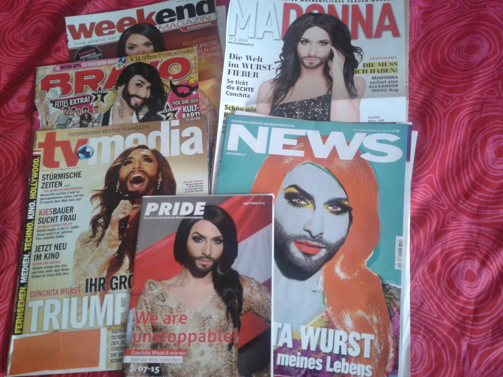 Pero la victoria ha dado para mucho, Conchita ha copado espacio en la televisión austríaca y también en otros medios como en las (no muy numerosas) revistas de este país ha copado portadas (la Super Pop alemana, la Biblia de adolescentes Bravo ha aprovechado para recoger su caso como ejemplo para superar la homofobia adolescente).
