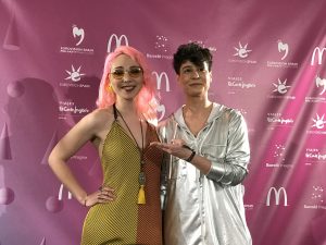que tuvieron en Madrid. Era su primera pre-party y estaban muy felices de haber sido tan bien acogidas. Isaura nos contó que ella hace música electrónica y ante el encargo de la RTP para el Festival da Cançao tuvo claro que quería componer en portugués, su primera canción en su idioma, pero no conseguía encontrar una voz adecuada, hasta que un primo suyo durante una comida familiar le enseñó la audición de Claudia Pascual en La voz y contactó con ella.