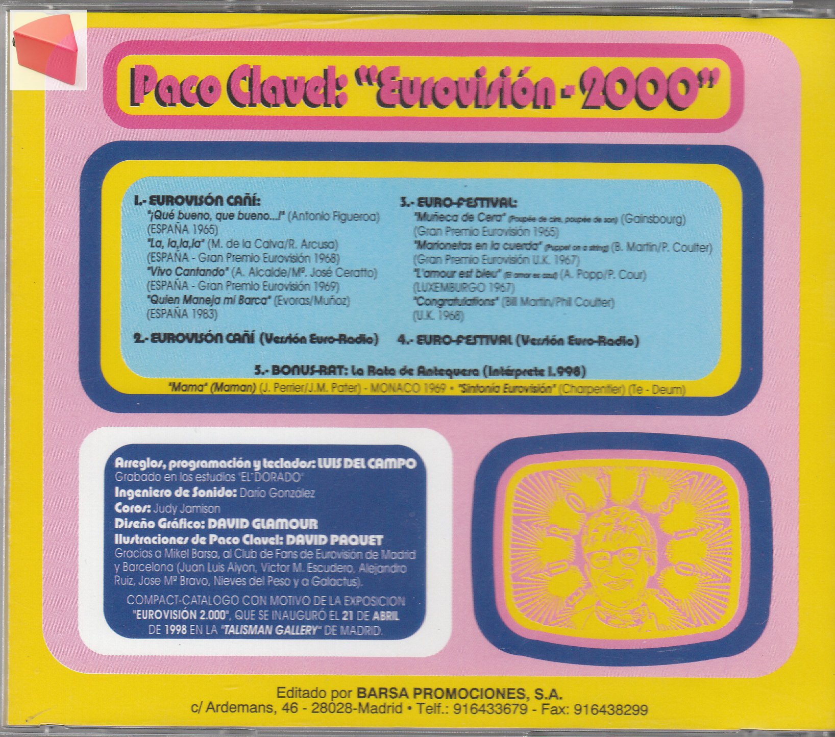 Como resultado, se editó un CD, un joyita por los nos gusta el merchandising eurovisivo. Es un CD troquelado con versiones eurovisivas pacoclavelianas.