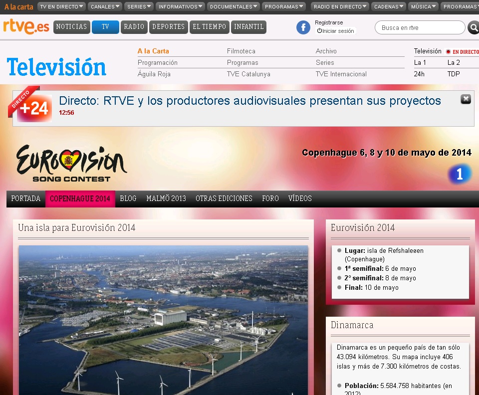 Tan solo unas breves noticias sobre dónde tendrá lugar el festival de 2014 y la elección interna de Conchita Wurst pero, con la llegada del nuevo año escolar y tras las vacaciones, TVE se ha puesto las pilas para comenzar a dar cobertura al la 59º edición del Festival. La web de TVE sobre Eurovisión es la más visitada en su género y Eurovisión es una de las secciones que más visitantes recibe de toda la web de RTVE. En ella ya podemos ver una pestaña que indica Copenhague 2014 y las fechas de las semifinales y la final 2014. La página recoge asimismo información sobre Copenhague, el tiempo, el capítulo de Españoles en el Mundo dedicado a la capital danesa, así como unas frases interesantes y útiles en el endemoniado idioma danés.